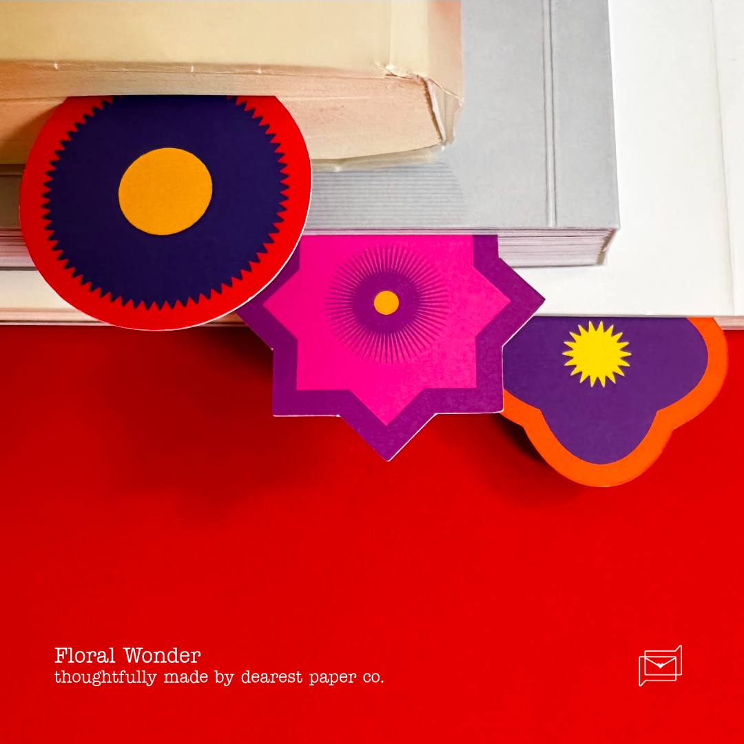 Floral Wonder is a bookmark note with a tiny flower sticker designed to remember a wandering thought as it blooms.